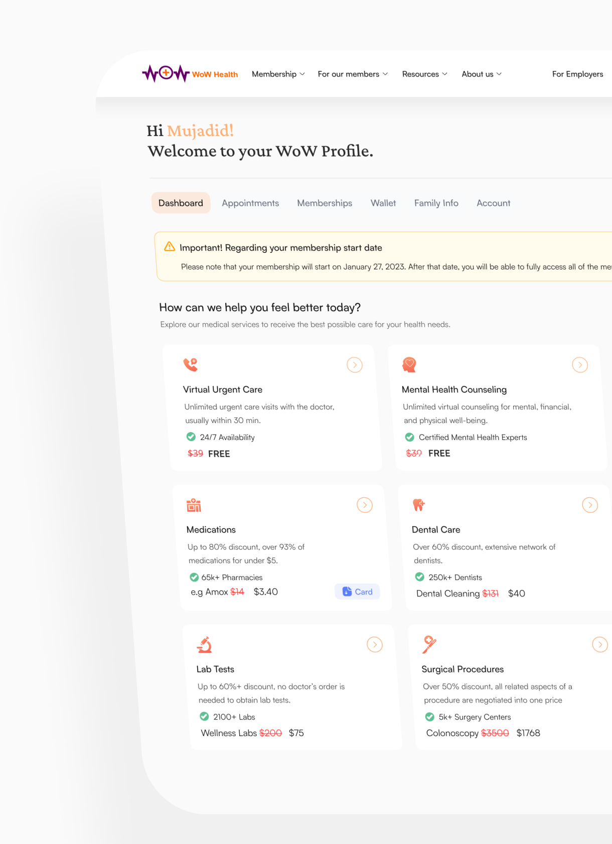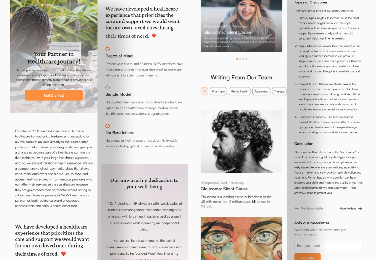 We provided them a User-Centric Approach we designed a user-friendly and intuitive health-tech solution that showcased the advantages of switching to WoW Health's alternative healthcare platform.